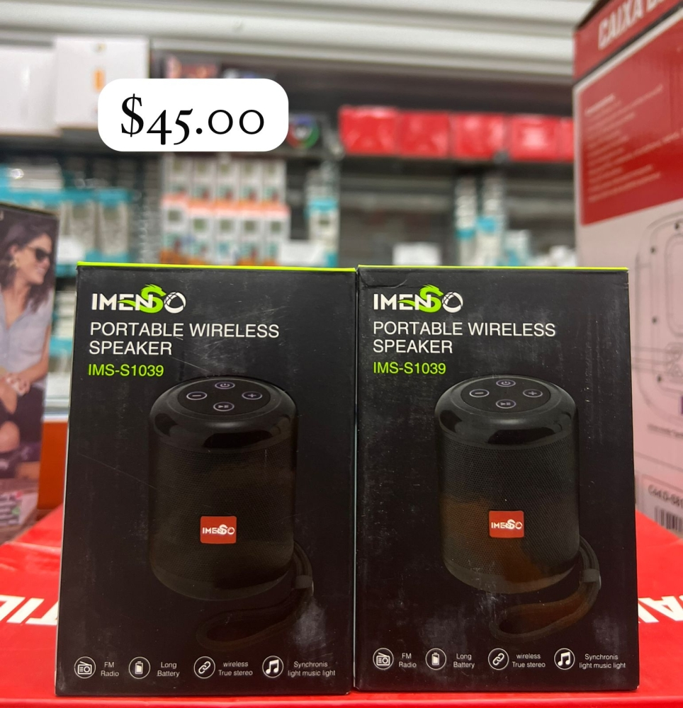 Caixa de som portátil IMENSO IMS-S1039, som estéreo sem fio, bateria de longa duração e rádio FM.