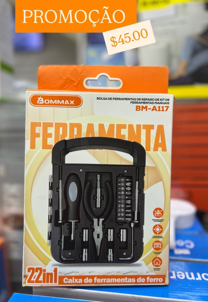 Kit de ferramentas Bommax BM-A117, 22 em 1, ideal para reparos domésticos, com estojo portátil.
