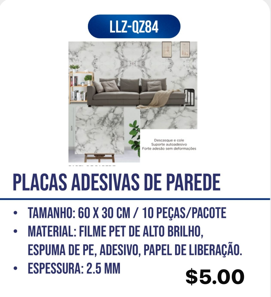 Placas adesivas de parede LLZ-QZ84, 60x30cm, pacote com 10 peças, material PET de alto brilho e espuma PE.