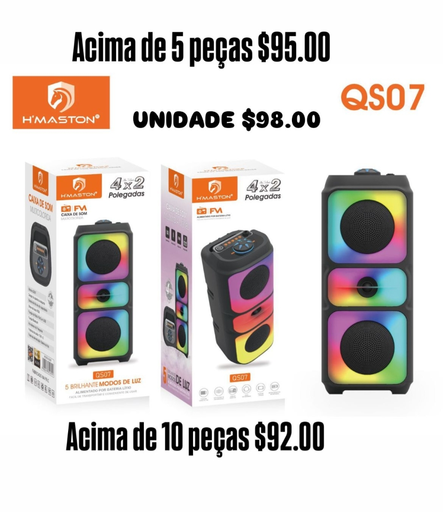 Caixa de som 4x2 polegadas com modos de luz RGB, conexão Bluetooth e som potente. Perfeita para festas e eventos.
