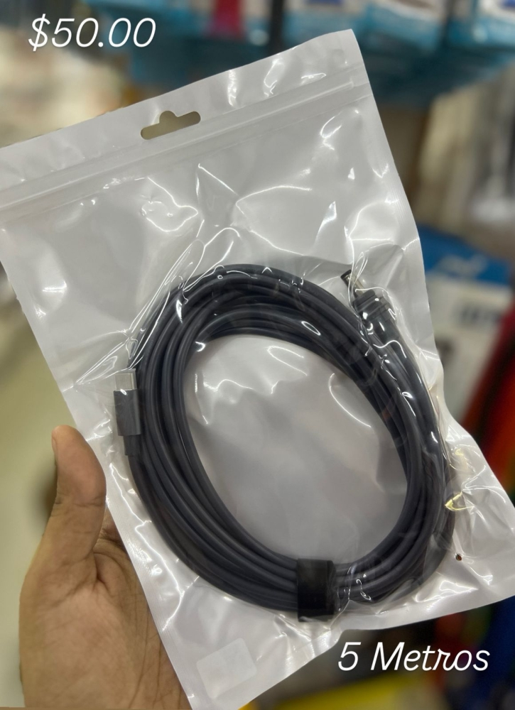 Cabo de energia veicular com conector Tipo-C e 5 metros de comprimento. Compatível com diversos dispositivos. Ideal para uso automotivo.